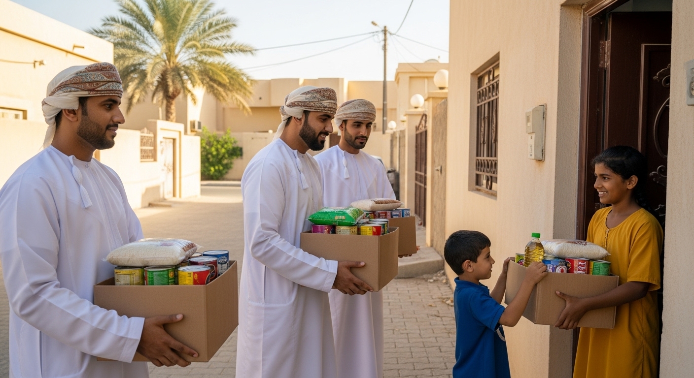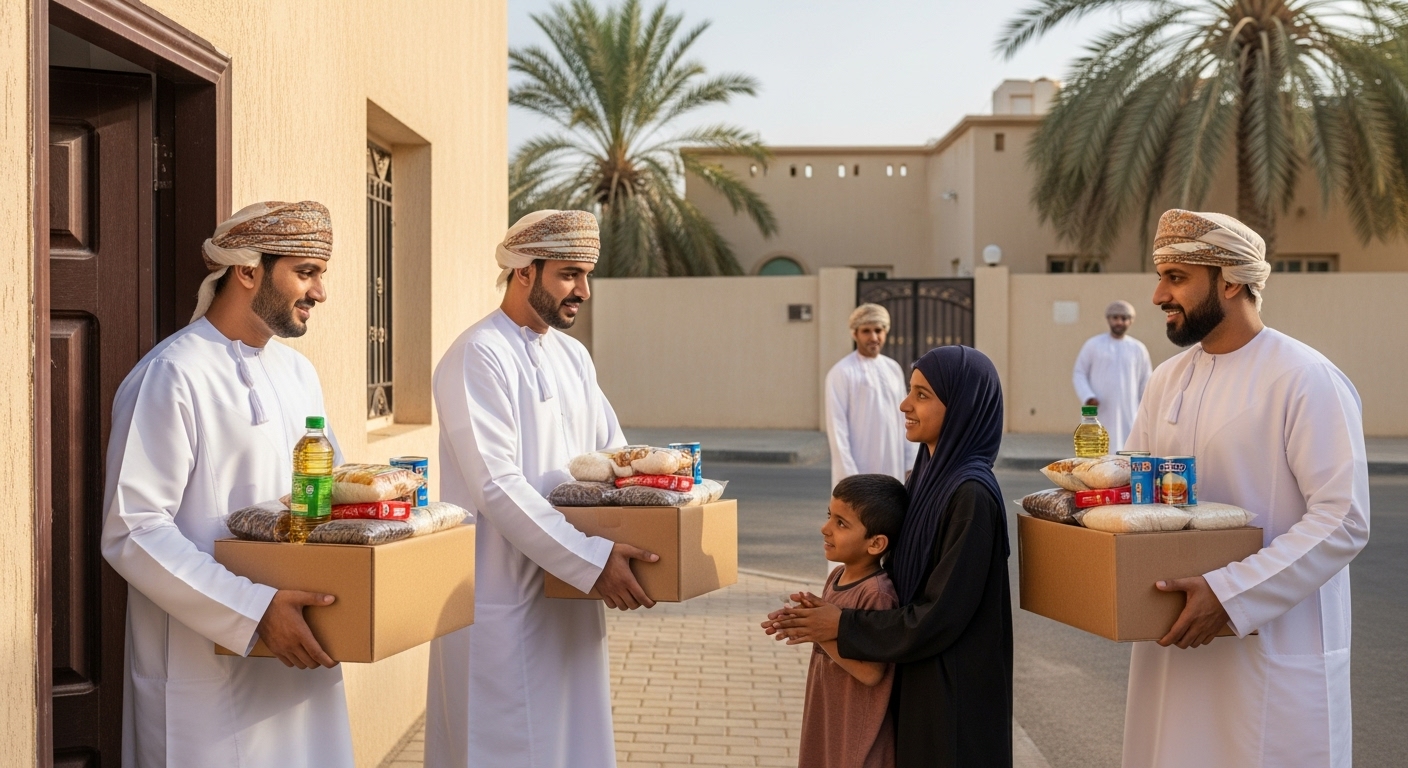 توفير مؤونة غذائية على شكل طرود حيث يبدأ الإعداد لهذه المبادرة في شهر رجب من كل عام.